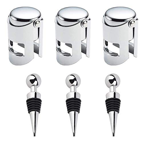6-Pack Flasktätningsset, 3 St Vinflaskstopp, 3 St Mousserande vin Tätning, Vin Stoppers, Rostfritt stål Vinstoppers för Vinsamling, Vin, Champagne, Ölflaska Saver Tätningsmedel