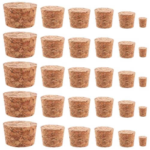 GORGECRAFT 30 st 6 stilar trä korkflaska proppar avsmalnande korkpluggar ersättning naturligt mjukt litet hantverk vinflaska korkar lock för vin ölflaska glasflaskor glasburkar 24,5 till 39 mm