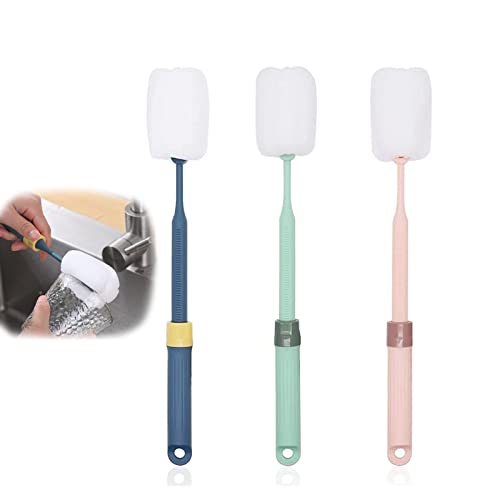 Kanyka 3 st flaskborste, svamp rengöringsborste för glas svamp med handtag porös svamphuvud stark inspelningskapacitet lämplig för vatten baby ölflaska kopp