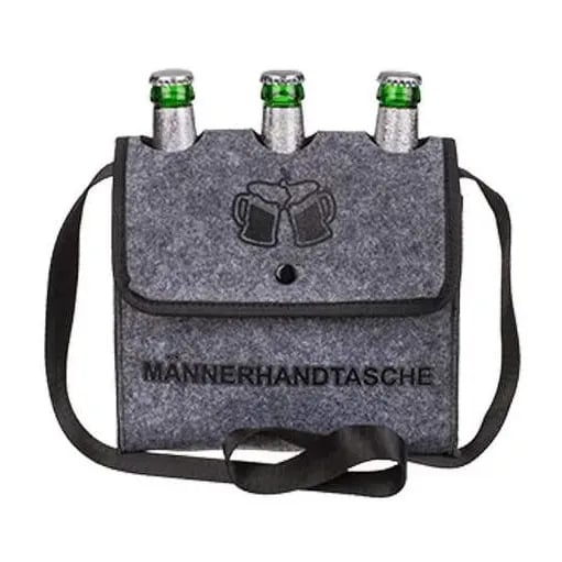 Handväska för 6 ölflaskor Broderad "MÄNNERHANDTASCHE" / Mått : 24 x 14 x 16 cm