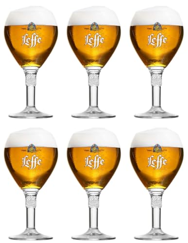 Leffe Set med 6 genomskinliga ölglas 330 ml + 6 gratis underlägg