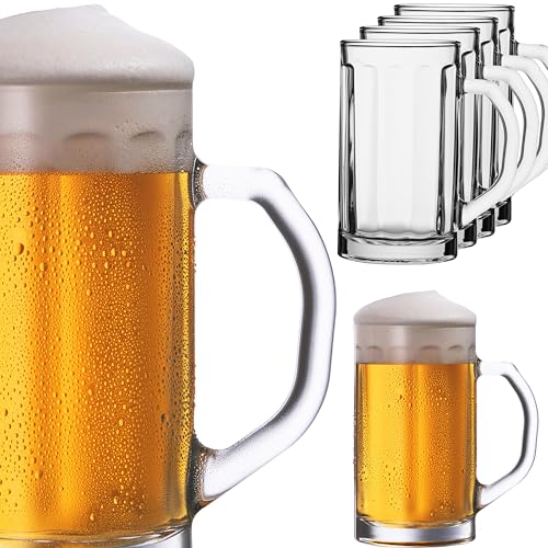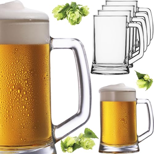 Liuer ölglas, ölmuggar 0,5 liter, veteölglas av högkvalitativt glas, ölmugg med handtag, ölrep för familjefester eller fester (B)