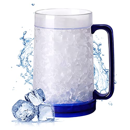 ACTOYS Ölglas för frysning, Frozen Beer Mug, 450 ml ölglas med dubbla väggar, 10 x 15,5 cm, ölmugg med handtag, kylkopp, ölsejdel svalkande för iskylda drycker, öl, rött vin etc