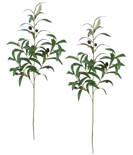 Konstgjord olivkvist med svarta oliver 77 cm, set om 2, stora som riktiga medelhavsgrenar, dekorativ gren, bröllopsdekoration, olivblad, olivbuskdekoration för kransar, girlang, arrangemang