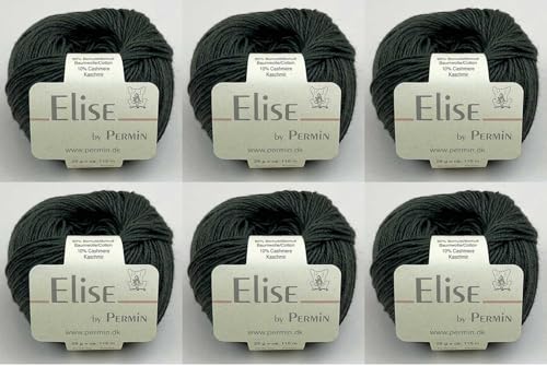 6 x Elise by Permin – lyxigt bomullsgarn (25 g/115 m) (34 olivblad)