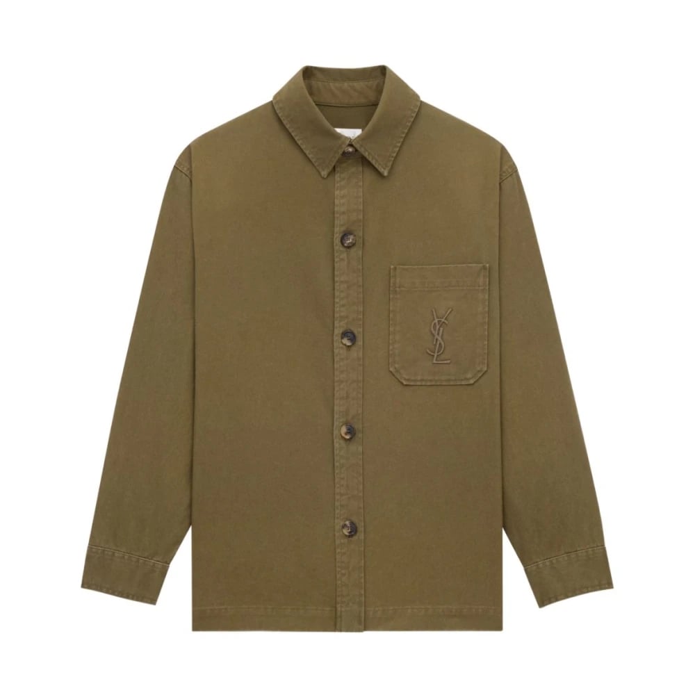 Saint Laurent, Jackor , Herr, M, Bomull, Broderad Logotyp Olivgrön Jacka