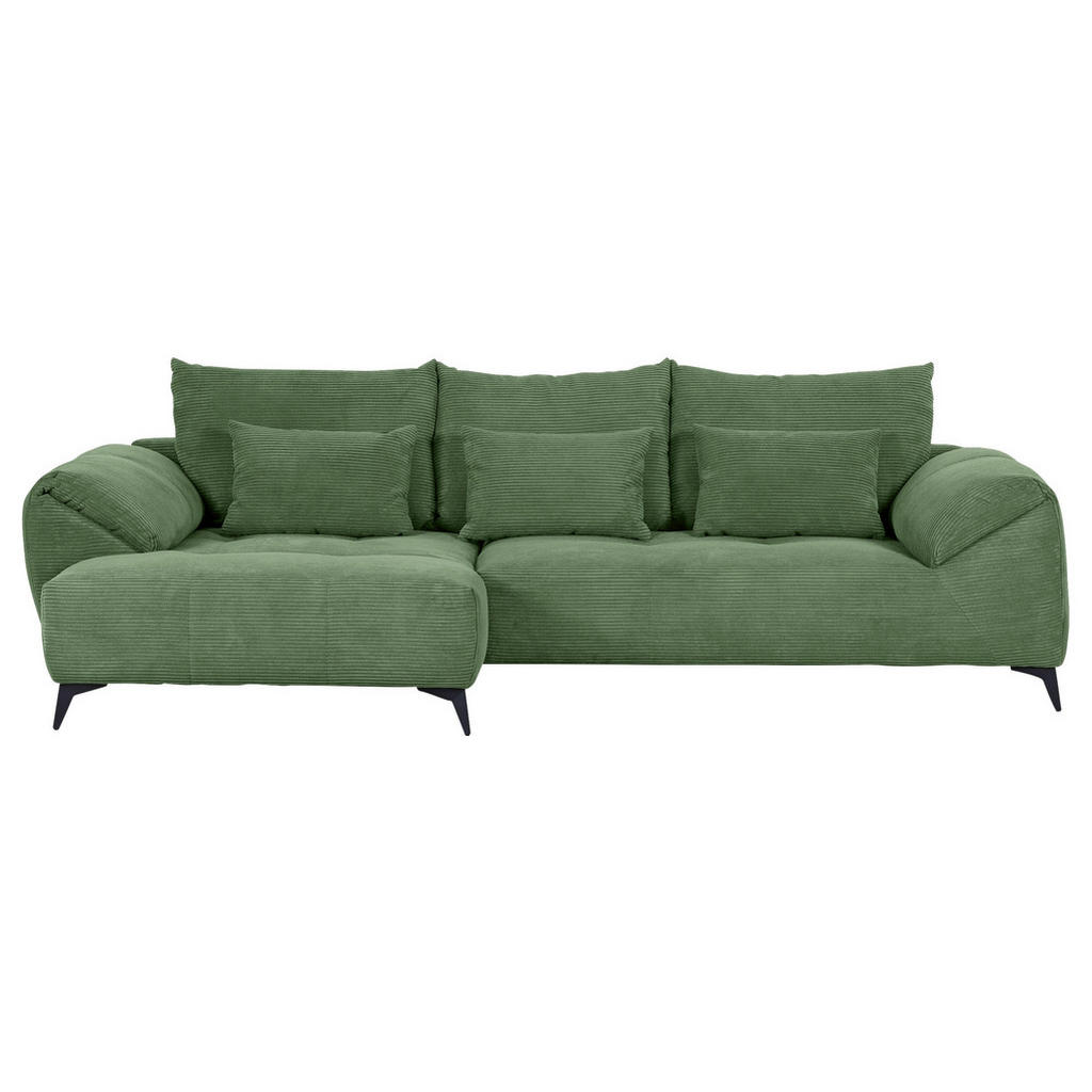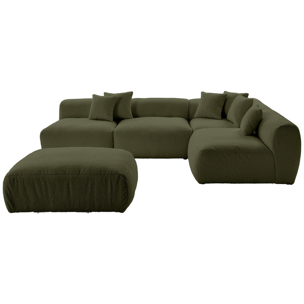 Livetastic HÖRNSOFFA inkl. pall i flatväv, teddy tyg olivgrön