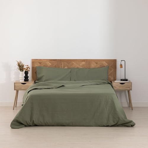 BELUM | Påslakan 100% Linne Modell: Olivine för säng 260x240 cm Färg: Grön