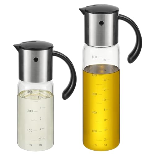 Vucchini stor olivolja dispenser flaska kök matolja dispenser auto flip oljebehållare – rostfritt stål läckagesäker vinäger glas cruet (295 ml och 470 ml set)