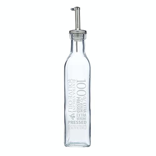 KitchenCraft World of Flavours olivolja flaska droppbricka med dekorativt tryck, glas, 270 ml, silver