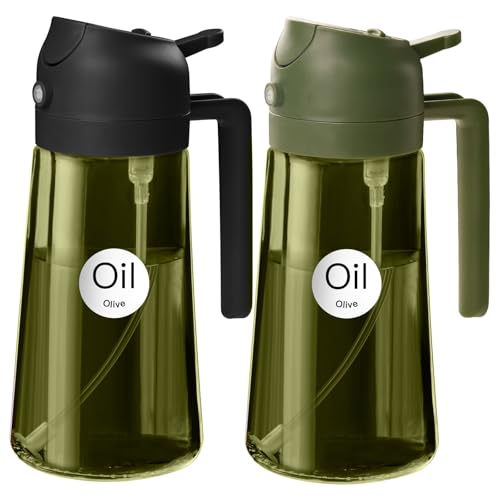 YARRAMATE 470 ml ljusblockerande mörkgrön oljespruta för matlagning med klistermärken, livsmedelskvalitet premium 2 i 1 olivolja dispenser flaska för köksredskap, sallad, stekning, grill (svart och