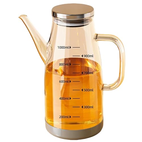 Pastoralist oljedispenser flaska med skala 1 000 ml värmebeständig läckagesäker glas olivolja dispenser flaska för matlagning kökstillbehör, glas
