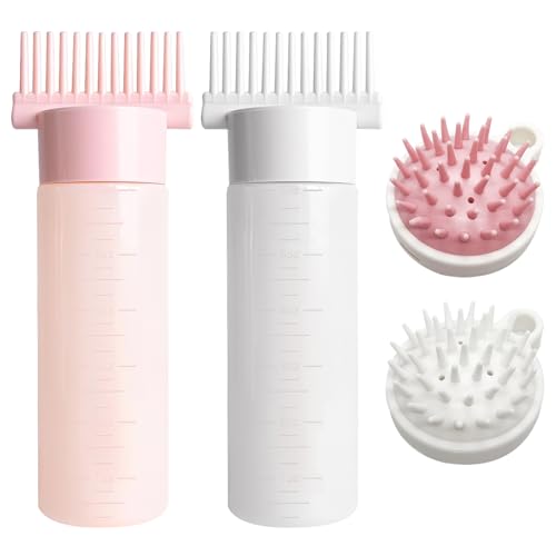 TAIHOBO 2 hårolja applikator 180 ml med 2 hårbotten massageborste, applikator flaska hår med graderad skala, håroljeapplikator flaska jämn hårfärgningsborste, rotkam flaska olja hår
