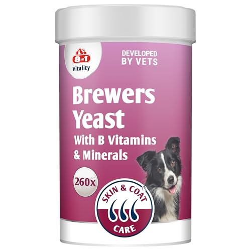 8-i-1 öljäst tabletter – unik kombination av vitaminer för alla hundar, stöder hud- och pälsvård, 1 burk (260 tabletter)