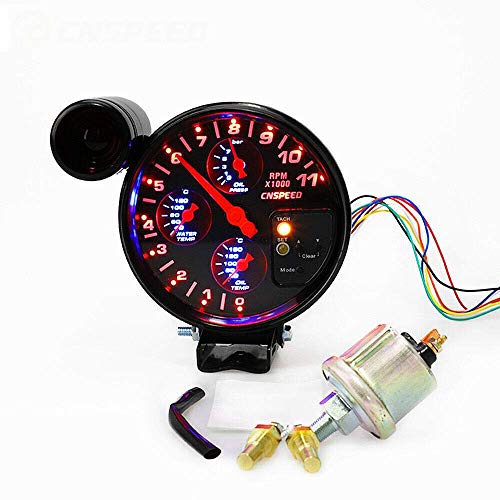 Riloer Bil 4 i 1 varv/min meter 5 tum 12 V varvräknare mätare med säte och växelljus oljepress vatten oljetemperatur för bil