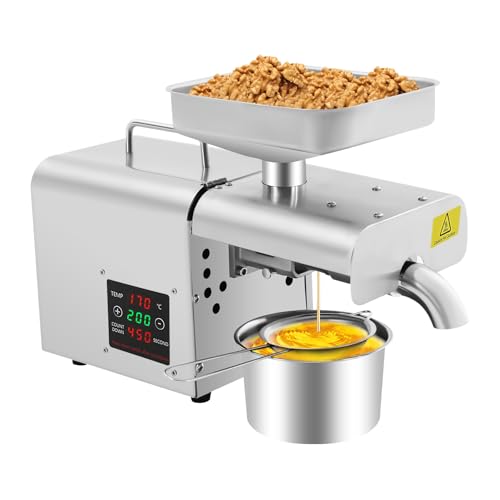 VEVOR Elektrisk oljepress, oljeextraktor i rostfritt stål 700 W, konstant temperatur 140 ℃, oljeextraktionsmaskin för pressning av jordnötter, sesamfrön, raps