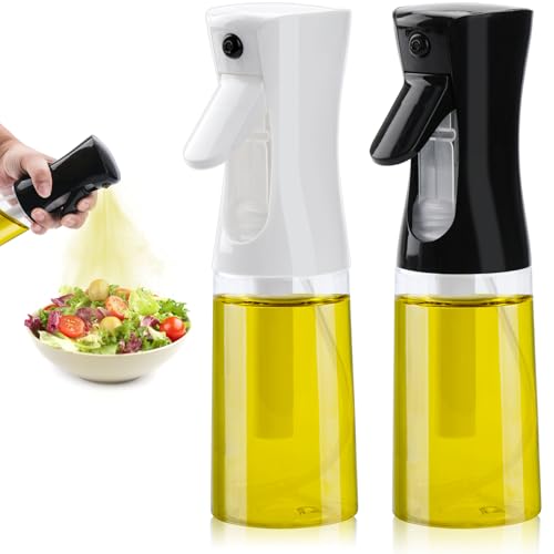 2 stycken oljesprutor för matolja glas, 200 ml oljesprayflaska, oljespray för luftfrys, oljespray för kök, grillning, sallad, BBQ, varmluftsfritös, bakning (svart + vit)