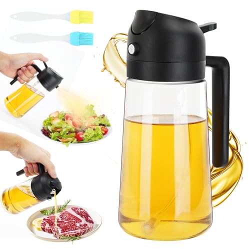 JASTOO 2-i-1 oljespruta för matolja 470 ml/16 oz oljesprayflaska livsmedelssäker oljespray för matlagning olja sprejflaska för sallad grillning och varmluftsfritös