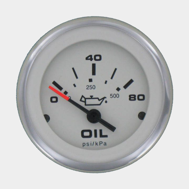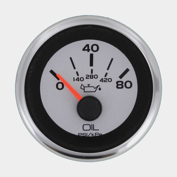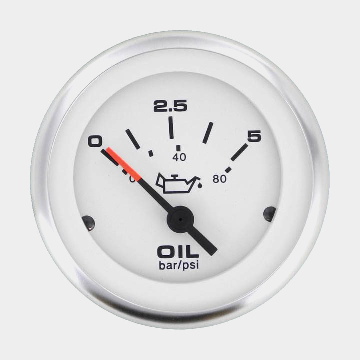Oljetrycksmätare Veethree Lido, imfri, Ø52 mm, 12 V, C, 240 - 33 Ω, silver/vit, 0 - 80 psi