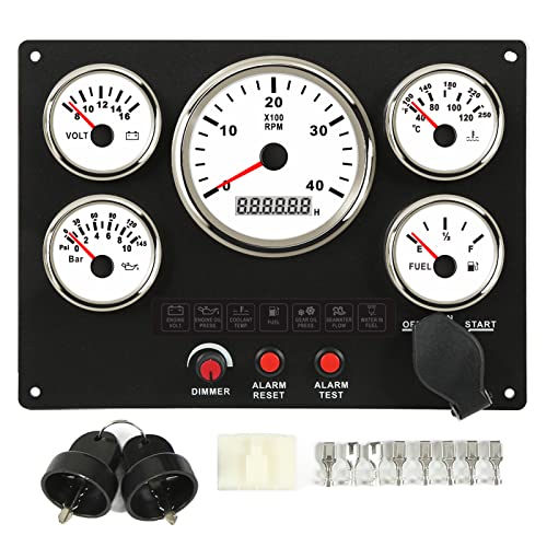 Boat Dash, 4000 RPM Varvräknare Instrumentbräda 5 Dash-mätare med bränslenivå, Vattentemp, Oljetrycksmätare, (Vit urtavla)