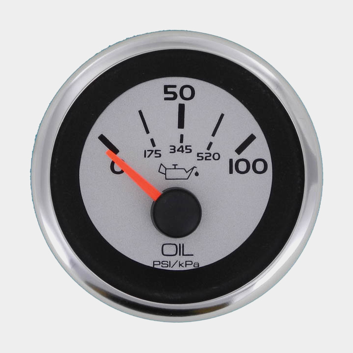 Oljetrycksmätare Veethree Lido, imfri, Ø52 mm, 12 V, C, 240 - 33 Ω, silver/vit, 0 - 100 psi