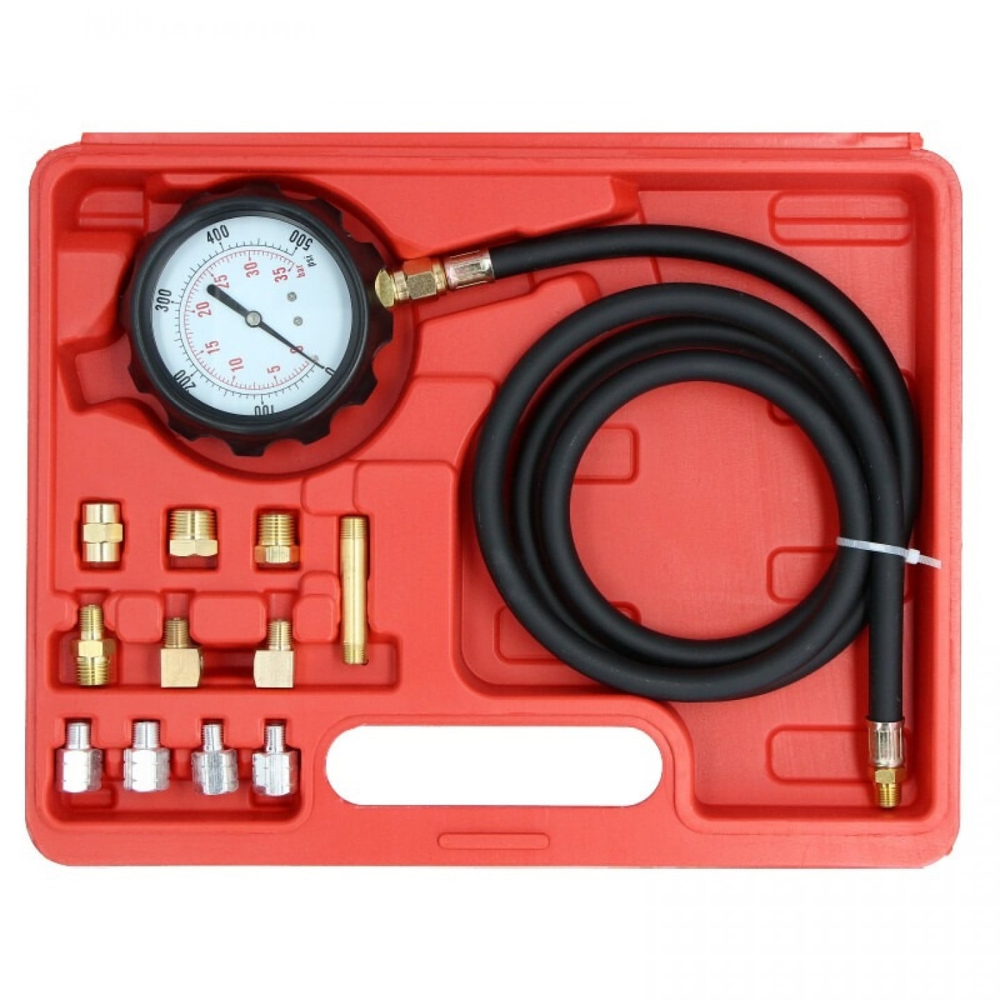 Wiltec Oljetrycksmätare 12 delar, 0–35 bar, oljetrycksmätare med 600 mm slang, oljetryckstestare för personbilar och lastbilar, tryckmätare motorolja, mätanordning i en väska