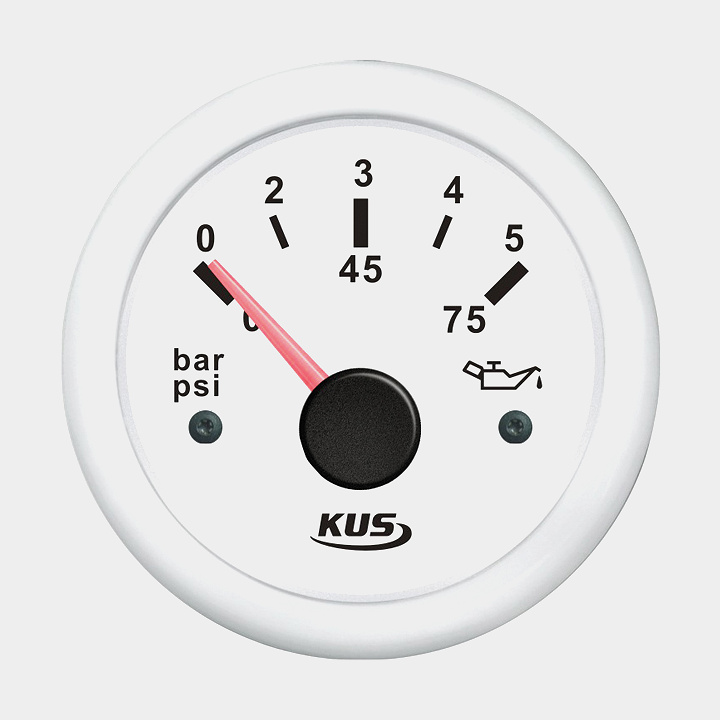 Oljetrycksmätare KUS, imfri, Ø52 mm, 12 V / 24 V, 10 - 184 Ω, vit, 0 - 5 bar / 0 - 75 psi