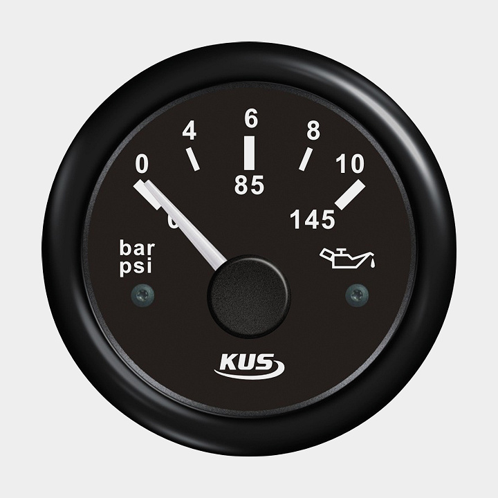 Oljetrycksmätare KUS, imfri, Ø52 mm, 12 V / 24 V, 10 - 184 Ω, svart, 0 - 10 bar / 0 - 145 psi