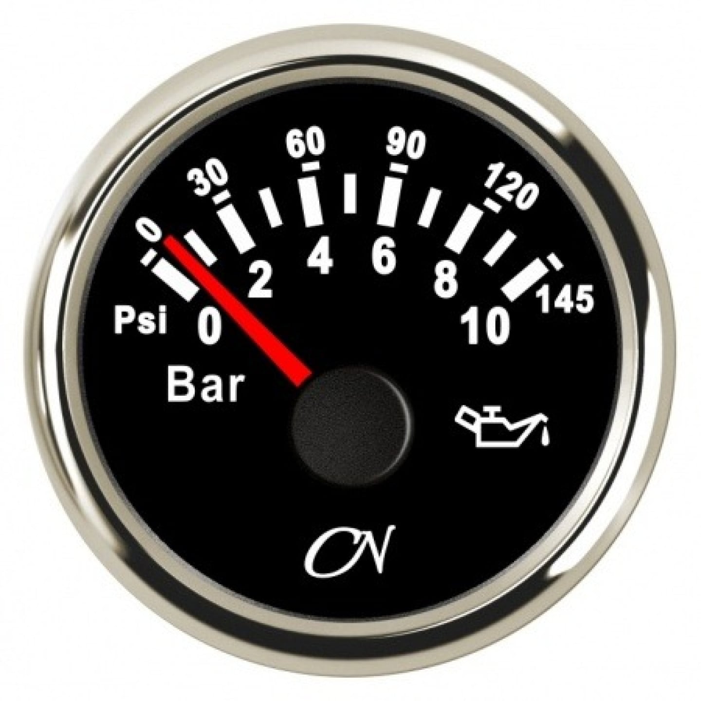 Oljetrycksmätare iGauge, imfri, Ø52 mm, 12 V / 24 V, 10 - 184 Ω, silver/svart, 0 - 10 bar / 0 - 145 psi