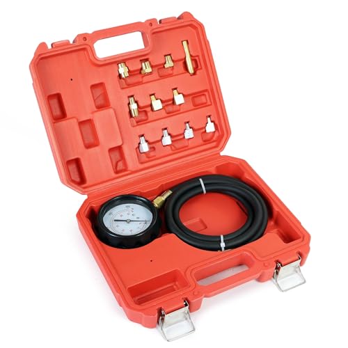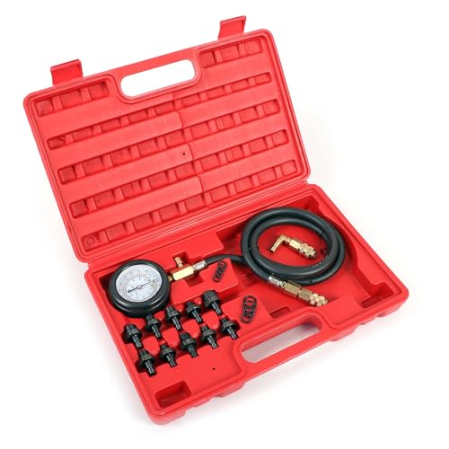 Wiltec Oljetrycksmätare 12 delar, 0–10 bar, oljetrycksmätare med slang, oljetryckstestare för personbilar och lastbilar, tryckmätare motorolja, mätinstrument testutrustning i väska