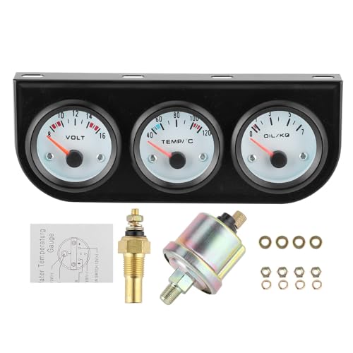Universalbil Trippelmätsats, Vattentemp med Volt och Oljetrycksmätare 52 Mm/2 Tum Bilinstrument Lämplig för De Flesta 12v 4/6/8 Cylindrar och Bensinbilar, Båtar, Lastbilar