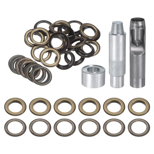 Getmore Crafts Öljettpress-set med spakpress, öljettverktyg och 50 stycken öljetter 5 mm, antik, mässing | handpress | rostfria metallöljetter | gör-det-själv | för tyg, skor, presenningar och kläder.
