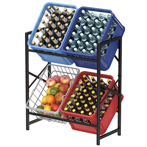 Lifewit dryckeslådeshylla, 4 lådor, hög, stabil lådhylla, metallbärare. 300 kg, platsbesparande dryckeshylla, öllåda, vattenlåda, hylla, dryckeslådställ, öllådehylla, svart