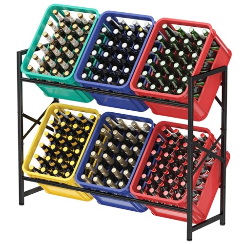 Lifewit dryckeslådeshylla 6 lådor hög, stabil lådhylla med metallstöd. 300 kg, platsbesparande dryckeshylla, öllåda, vattenlåda, hylla, dryckeslådställ, öllådehylla, svart