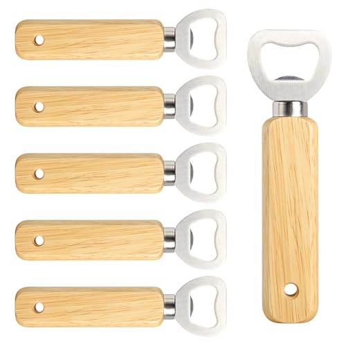 Graverbara flasköppnare i trä, 6 st handhållna ölöppnare med huvuden i rostfritt stål och hängande hål – gör-det-själv personlig för hem, bar, fester och gåvor KH1306