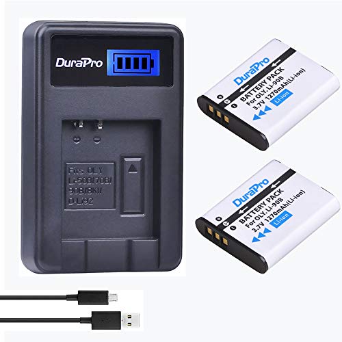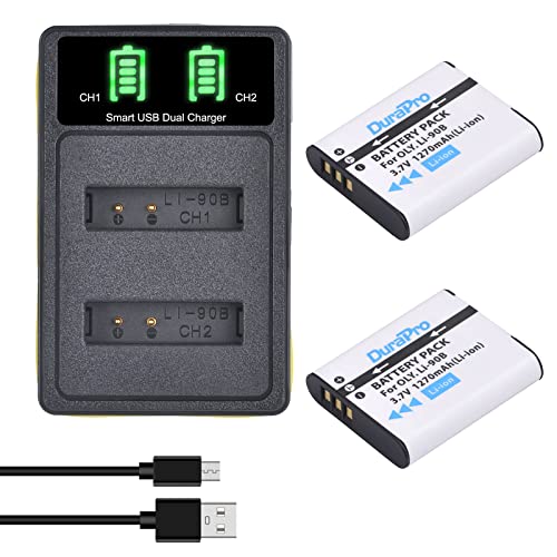DuraPro 2 st LI-90B LI-92 DB-110 batteri + LCD USB-laddare för Ricoh GR III, WG-6; Olympus Tough TG-5, TG-Tracker, SH-1, SH-2, Tough TG-2 iHS, Tough TG-3, Tough TG-4, SH60 kameror