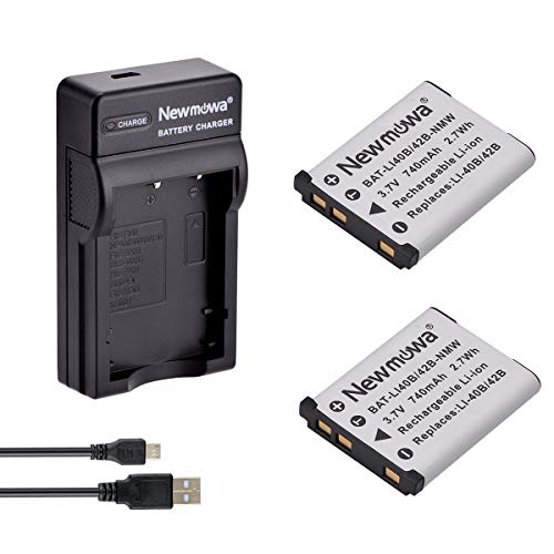 Newmowa Li-42B ersättningsbatteri (2-pack) och bärbart USB-laddarsats för Olympus Li-42B, Li-40B och Olympus Stylus 1040, 1050W, 1060, 1070, 1200, 7000, 7010, 7020, 7030, 7040, Tough 3000
