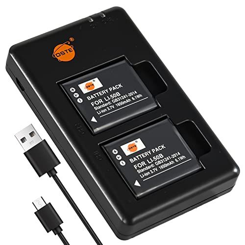 DSTE 2st LI-50B (1650mAh/3.7V) batteri + dubbel USB-laddare kompatibel med Olympus Stylus 1030, 9000, 9010, SP-800UZ, SZ-10, SZ-11, SZ-12, SZ-15, SZ-20