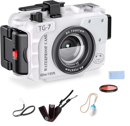Seafrogs 60 m/195 fot undervattenskamerahus för Olympus TG-6 – vattentätt fodral med 52 mm och 67 mm tråd, dubbla fiberoptiska portar, läckagedetektion (TG-7+ White)