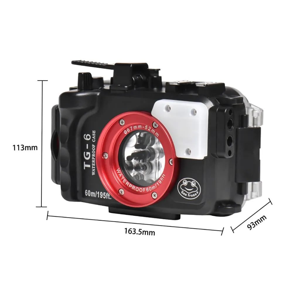 Seafrogs 60 m/195 fot undervattenskamerahus för Olympus TG-6 – vattentätt fodral med 52 mm och 67 mm tråd, dubbla fiberoptiska portar, läckagedetektion (TG-6 Black)