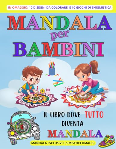 MANDALA PER BAMBINI: 75 mandala ESCLUSIVI, 10 disegni da colorare e 10 giochi enigmistici in OMAGGIO