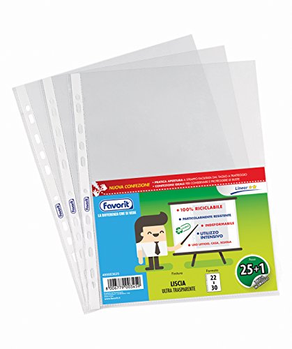Favorit Buste Perforate, Lucide, Medio Spessore, 22 x 30 cm, 25 Pezzi +1 Omaggio, Trasparenti