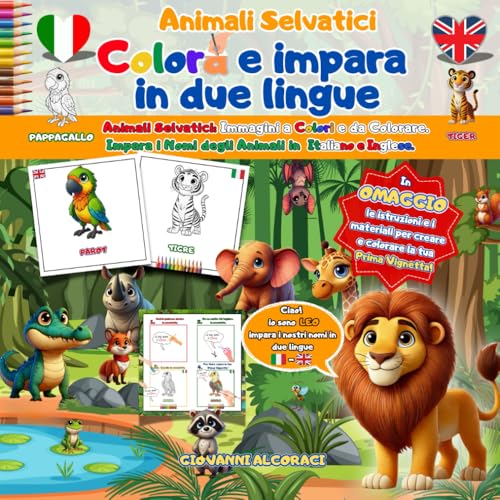 Colora e Impara in Due Lingue: Animali Selvatici.: Immagini a colori e da colorare. Impara i nomi degli animali in italiano e inglese. Omaggio: materiale e istruzioni per una vignetta.