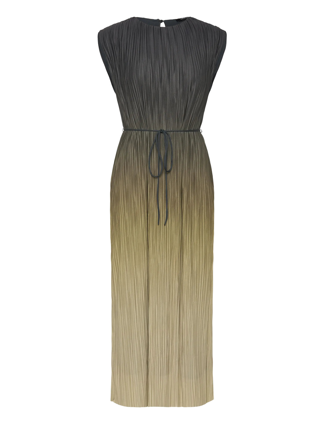 French Connection Xena Pleated Ombre Midi Dress Khaki Green