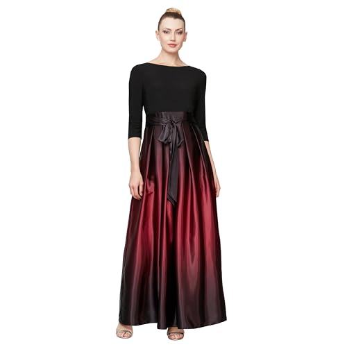 S.L. Fashions Women's Long Satin Mother of The Bride Dress with Pockets, Formal Party Gown (Petite and Regular Sizes), Fig Ombre, 6P