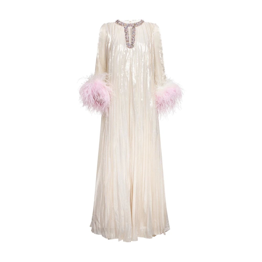 Self Portrait, Klänningar , Dam, L, Polyester, Metallic Ombre Fjäder Maxiklänning