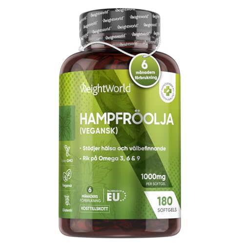 Veganska softgels med hampfröolja - rika på Omega 3, 6 och 9-180 softgels - 1000 mg hampolja - 6 månaders förbrukning - Hemp Seed Oil från WeightWorld