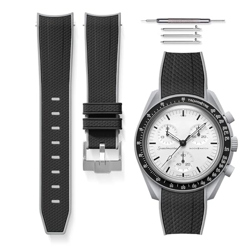 BONACE Klockarmband för Omega x Swatch MoonSwatch/Rolex Watch/SEIKO Watch 20 mm, armband i mjukt gummi med böjd design, ersättningsrem för Omega X Swatch Moonswatch Speedmaster, armband utan