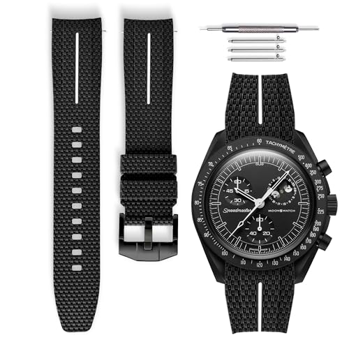 BONACE Klockarmband för Omega x Swatch MoonSwatch Watch 20 mm, armband i mjukt gummi med böjd design, ersättningsrem för Omega X Swatch Moonswatch Speedmaster, armband utan mellanrum, klockarmband för