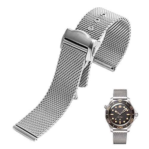 KLVN Klockarmband i rostfritt stål 20 mm för Omega 007 James Bond Seamaster 300 klockarmband vävt Milan 316L metallarmband
